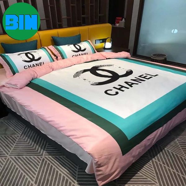 Relevant Chanel Light Pink Blue Logo Luxury Fashion Brand Bedding Set