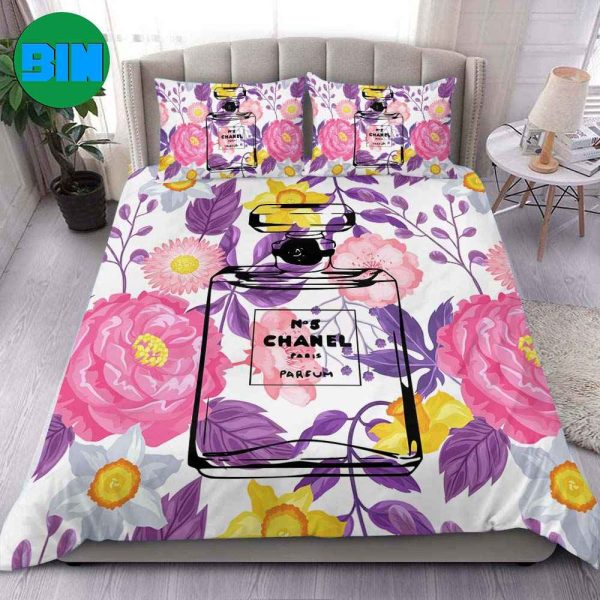 Interesting Chanel No5 Paris Parfum Art Line Seamless Pattern Delicate Flowers Bedding Set