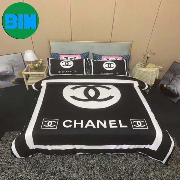 Interesting Chanel Black And White Logo Luxury Fashion Brand Bedding Set