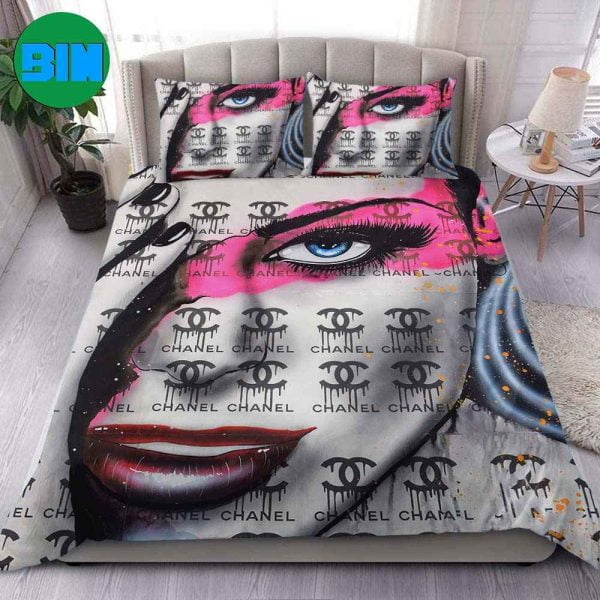 Useful Chanel Logo Pattern With Model Face Makeup Charm Style Luxury Bedding Set